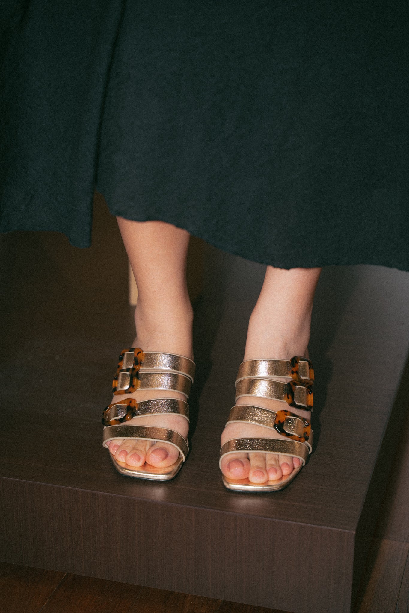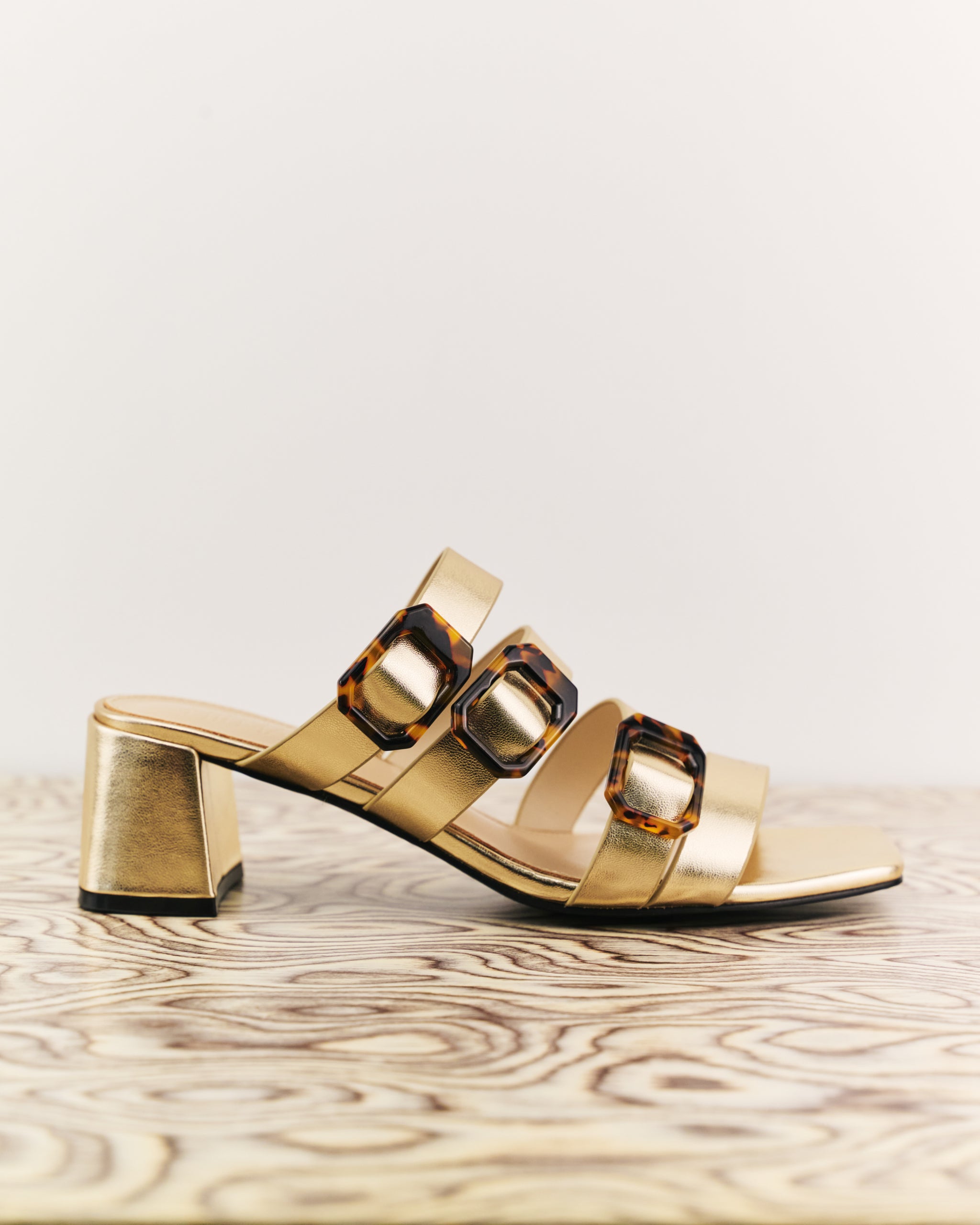 Step into effortless elegance with these chic block heel sandals. Designed with sleek four straps design and statement tortoiseshell-effect buckles, this pair blends modern style with timeless appeal. The sturdy block heel offers comfortable height and stability-perfect for all day wear. Finished with a square toe for a polished, contemporary look.