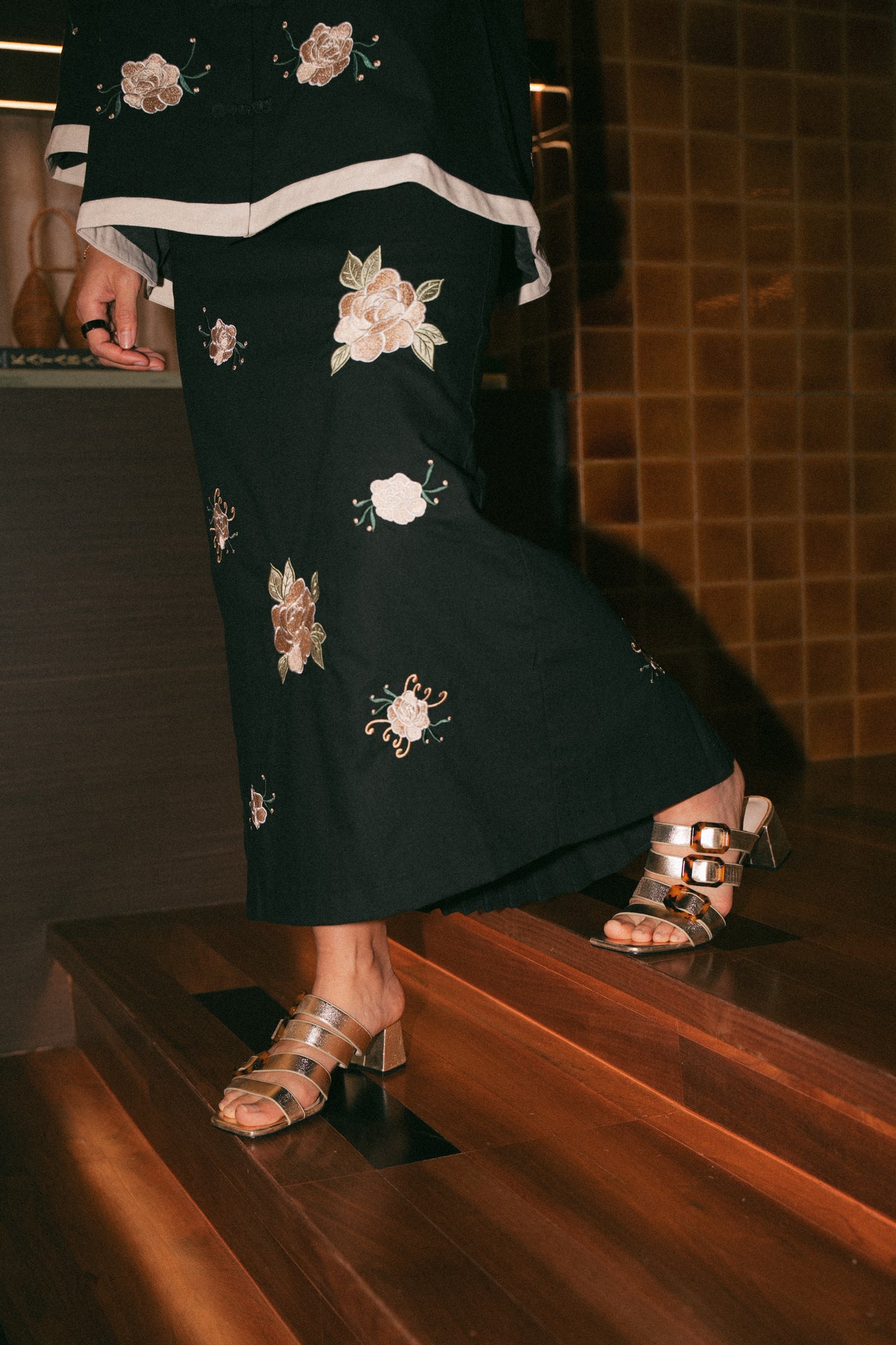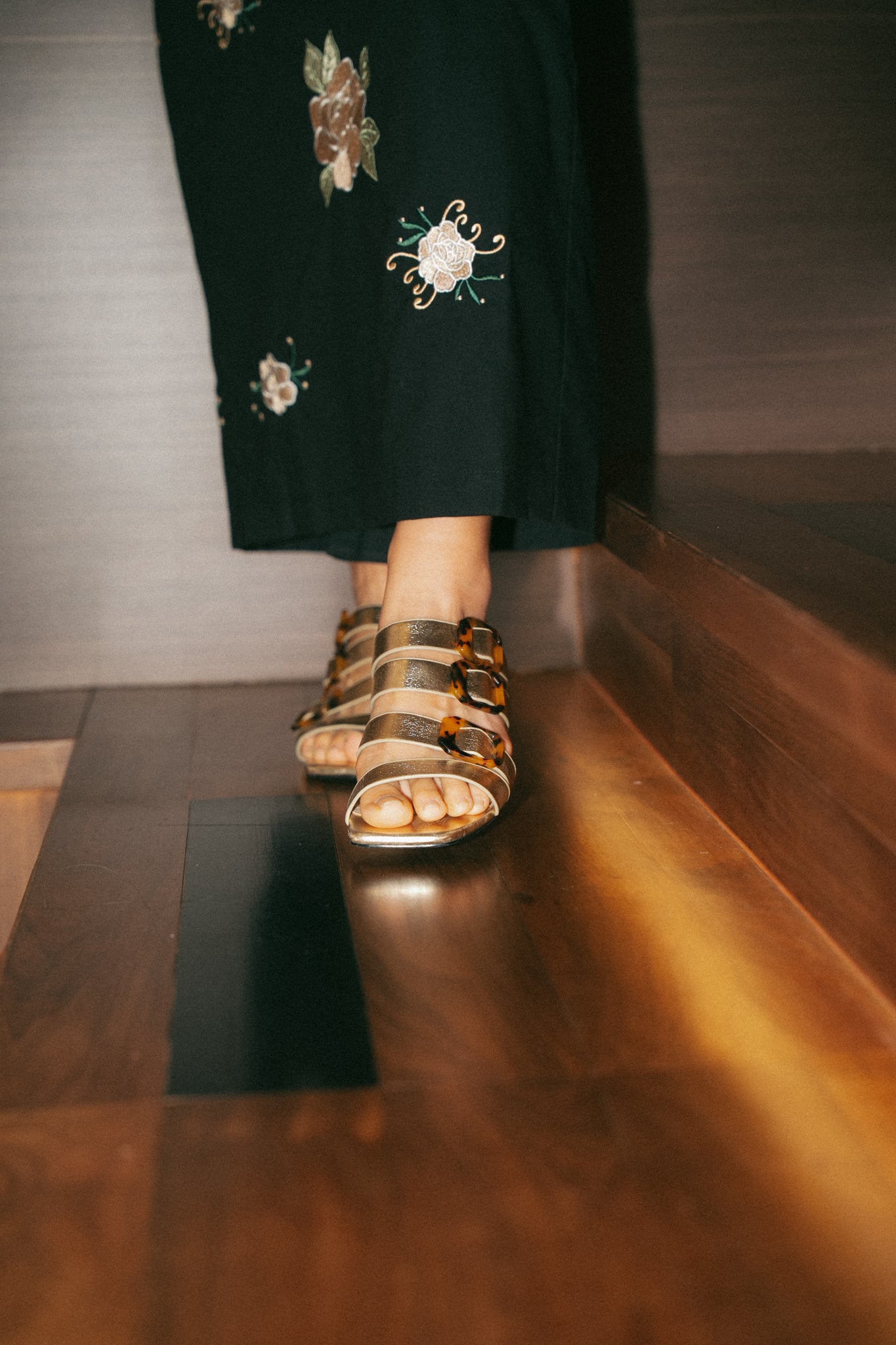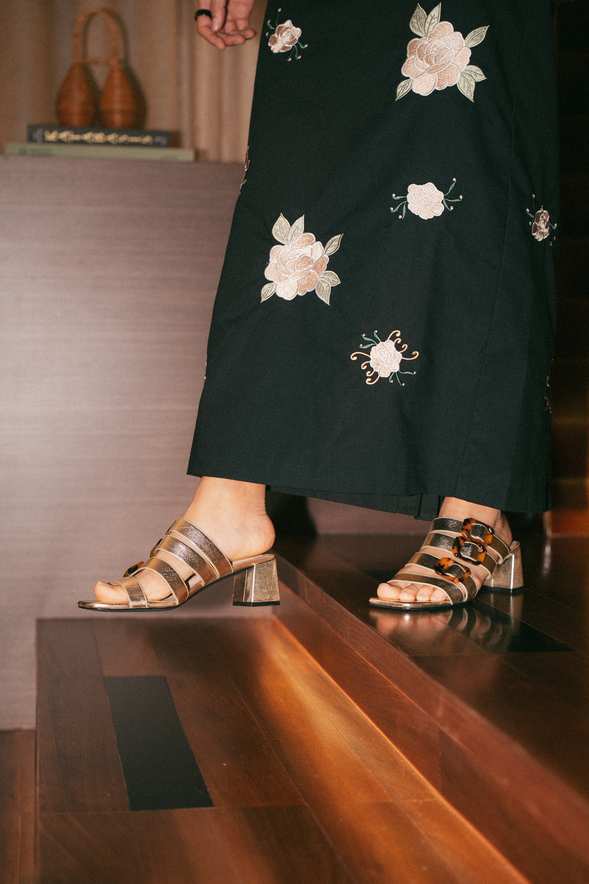 PMxNH Strappy Block Heel Sandals (Gold)