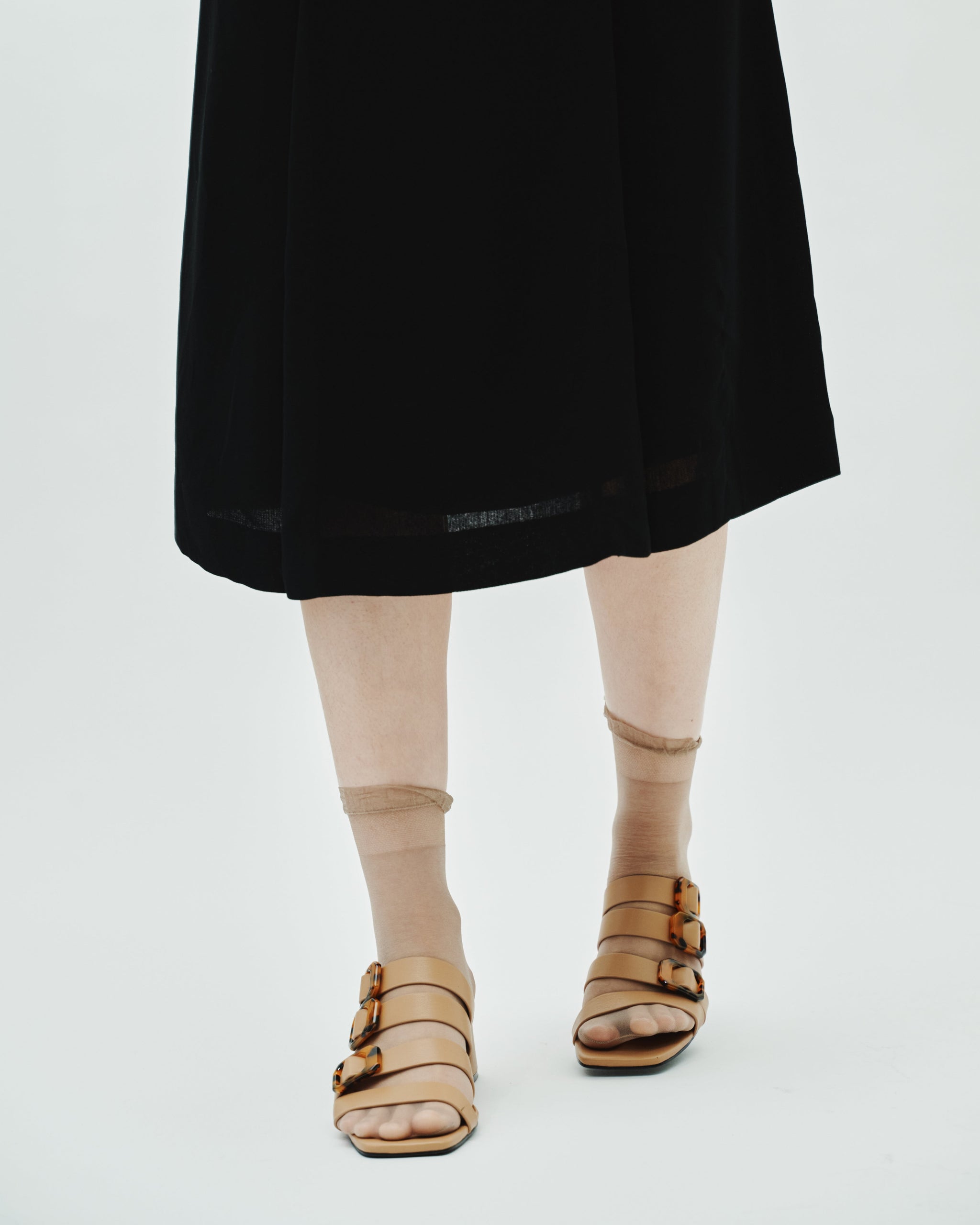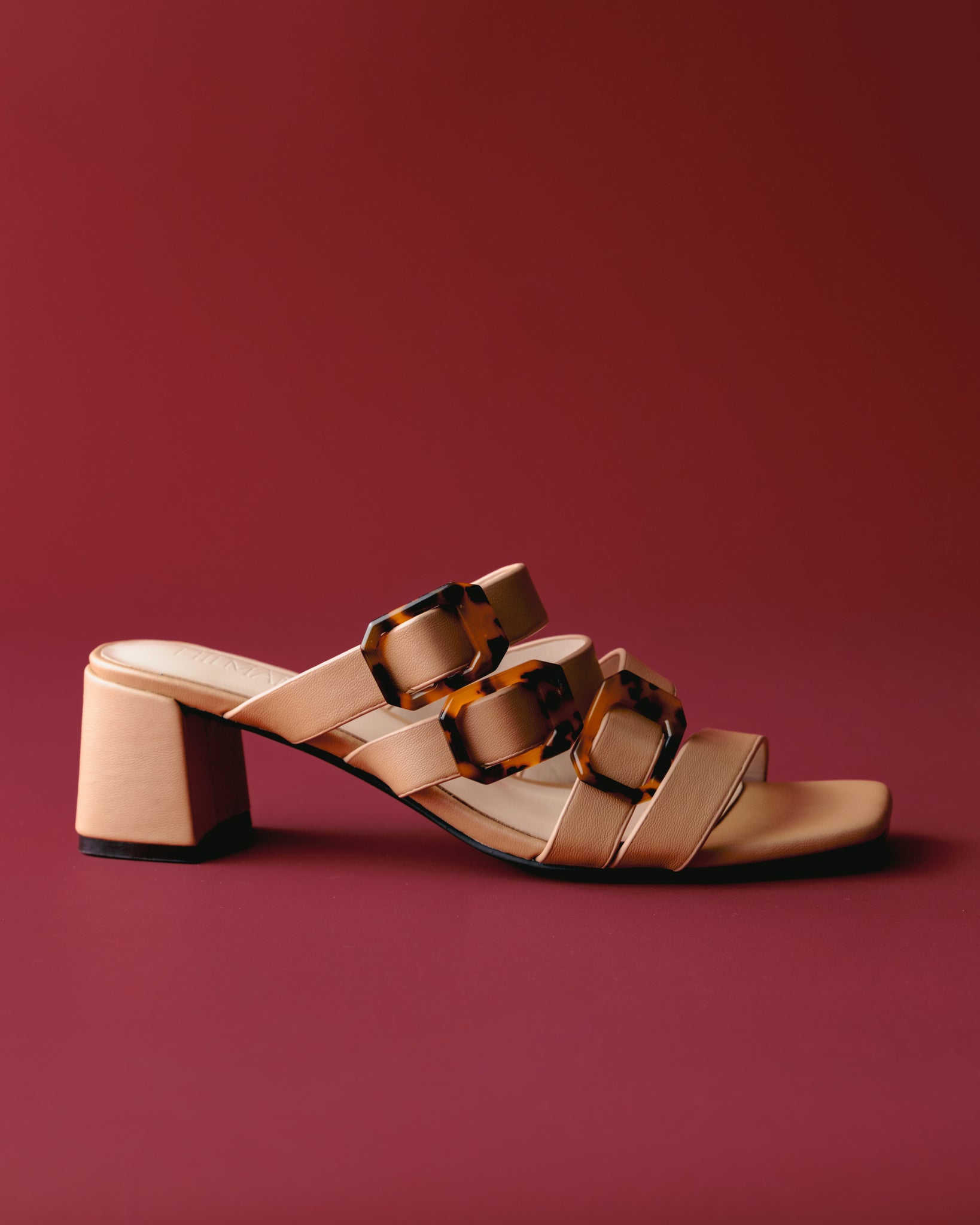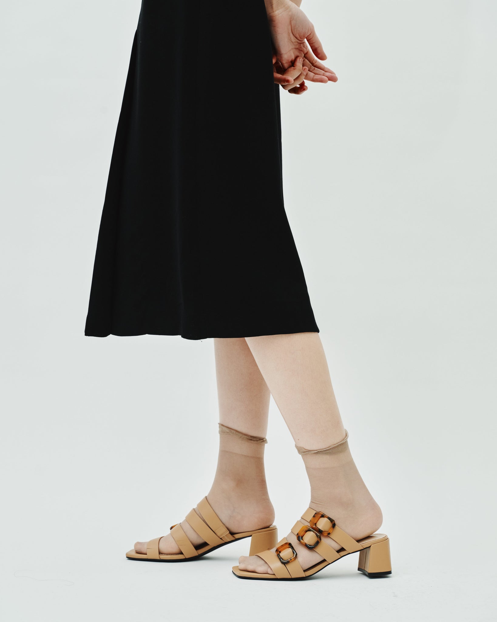 Step into effortless elegance with these chic block heel sandals. Designed with sleek four straps design and statement tortoiseshell-effect buckles, this pair blends modern style with timeless appeal. The sturdy block heel offers comfortable height and stability-perfect for all day wear. Finished with a square toe for a polished, contemporary look.